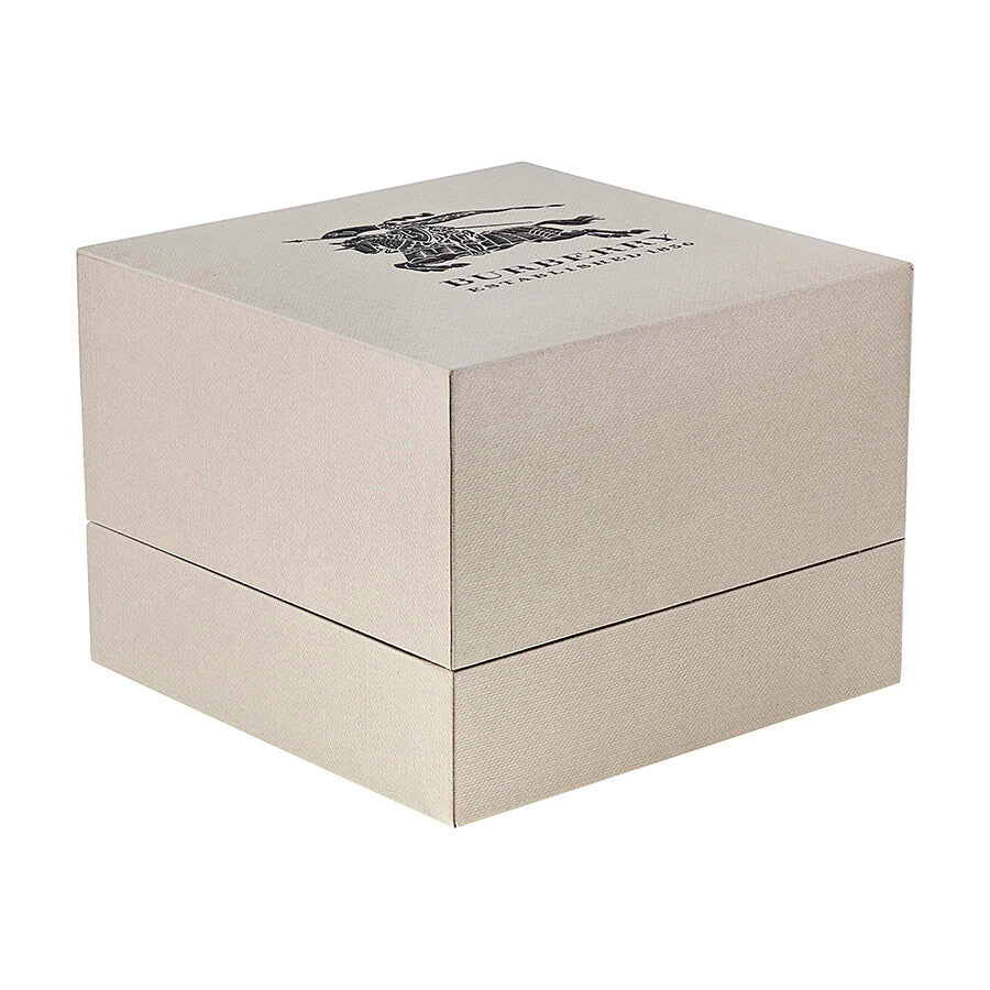 Stainless steel case with a two-tone (silver and gold-tone) stainless steel bracelet. Fixed gold-tone bezel. Silver check stamped dial with rose gold-tone hands and index hour markers. Minute markers around the outer rim. Dial Type: Analog. Date display at the 3 o'clock position. Quartz movement. Scratch resistant sapphire crystal. Pull / push crown. Solid case back. Case diameter: 34. Round case shape. Band width: 18 mm. Deployment clasp. Water resistant at 50 meters / 165 feet. Functions: date, hour, minute, second. Casual watch style. Burberry Silver Dial Two-tone Ladies Watch BU9115