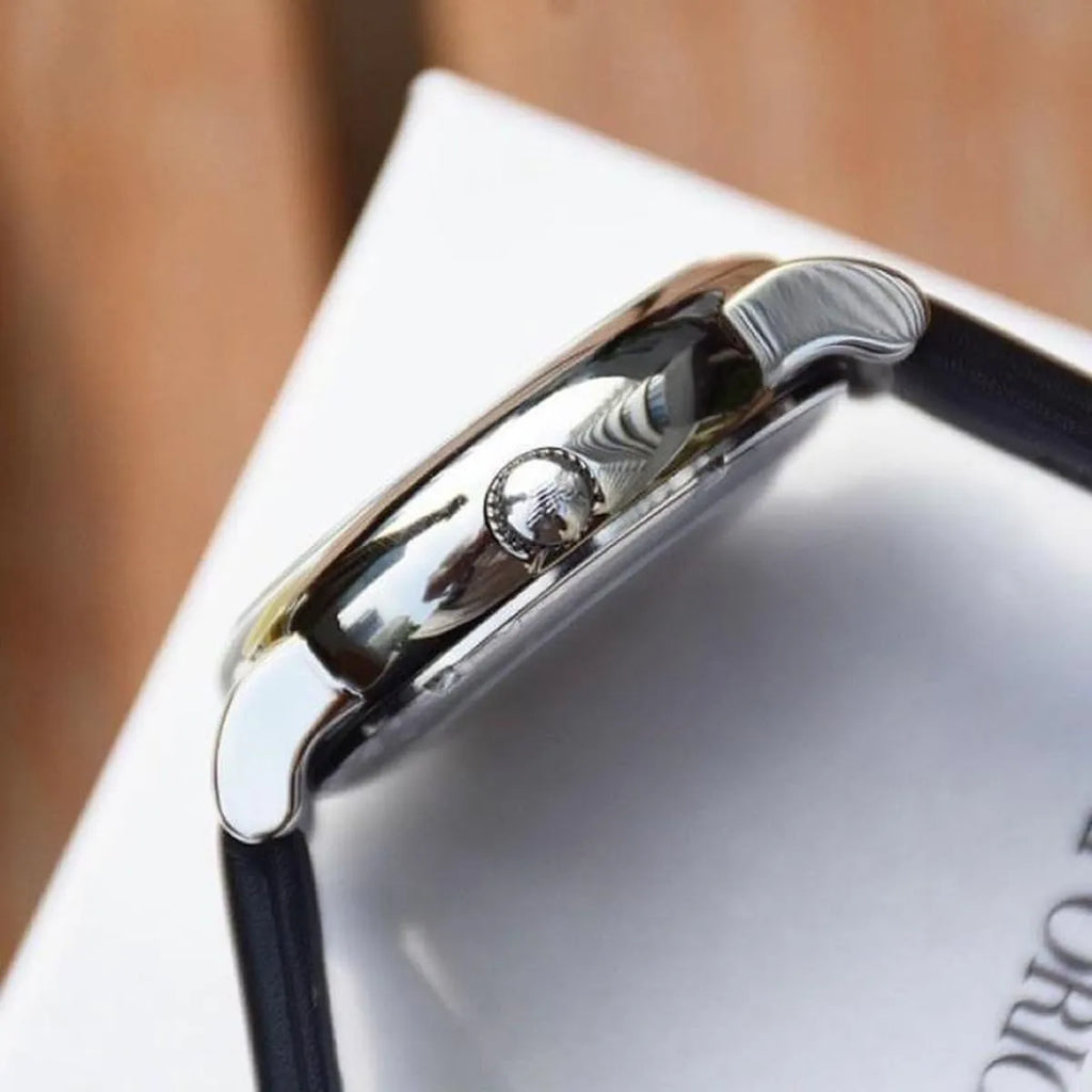 EMPORIO ARMANI Meccanico Black Leather Strap Black Dial Automatic Watch Luigi AR60040