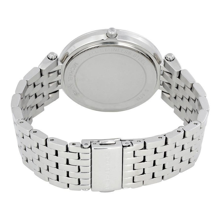 This Michael Kors Darci Pink Dial Stainless Steel Ladies Watch MK3352 comes in stainless steel case with a stainless steel bracelet. Fixed stainless steel bezel set with crystals. Pink dial with silver-tone hands and index hour markers. Dial Type: Analog. Quartz movement. Scratch resistant mineral crystal. Pull / push crown. Solid case back. Case diameter: 39 mm. Case thickness: 7 mm. Round case shape. Band width: 14 mm. Deployment clasp. Water resistant at 50 meters / 165 feet. Functions: hour, minute, second. Casual watch style.