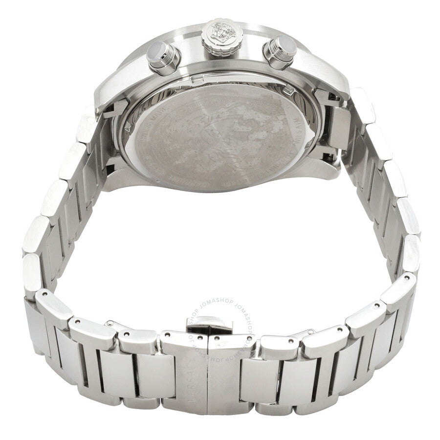 Versace Greca Dome Swiss Made Chronograph Blue Dial Silver Watch - VE6K00323